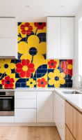 北欧厨房后挡板花砖 高饱和度几何拼色砖推荐